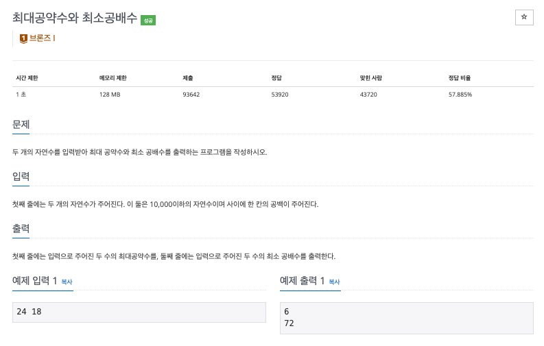 최대공약수와 최소공배수 [ Python ] [ 백준 : 2609 ]